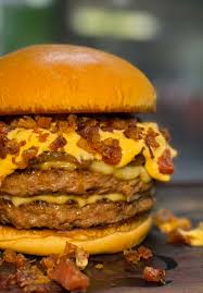 Burger duplo com duas carnes altas e suculentas, queijo cheddar derretido, alface, tomate, maionese e pão brioche selado. Um lanche robusto, montado pra impressionar!